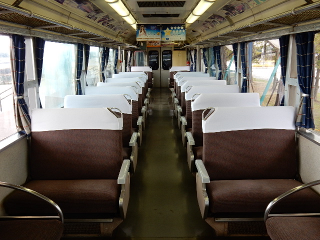 転換クロスシートの並ぶ車内ですが、中吊り広告や白いカバーは定期的