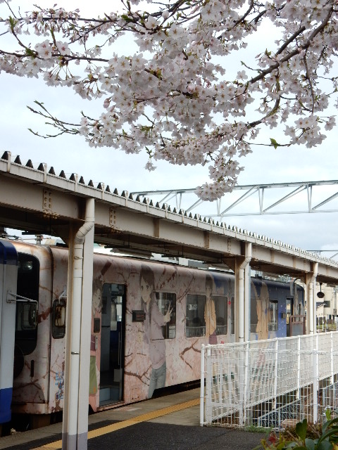 今回は桜の季節に来たもんで、七尾駅でも丁度身頃な感じです。