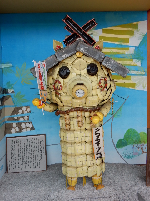 ホームでは、ご当地の陶器のお皿などで作ったしまねっこがお出迎え。