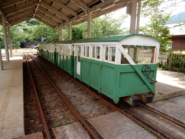 客車は5両編成で、完全な木造車でしょう。 私がホームに立った状態で
