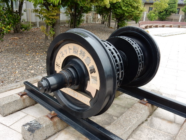 上の画像の枕木を使った標柱や、車輪オブジェに記されてる文字が