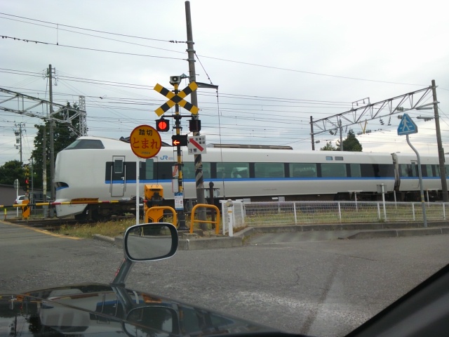 駅前を横切って、踏切を渡ります。…ようやくココで683系特急に出会う。