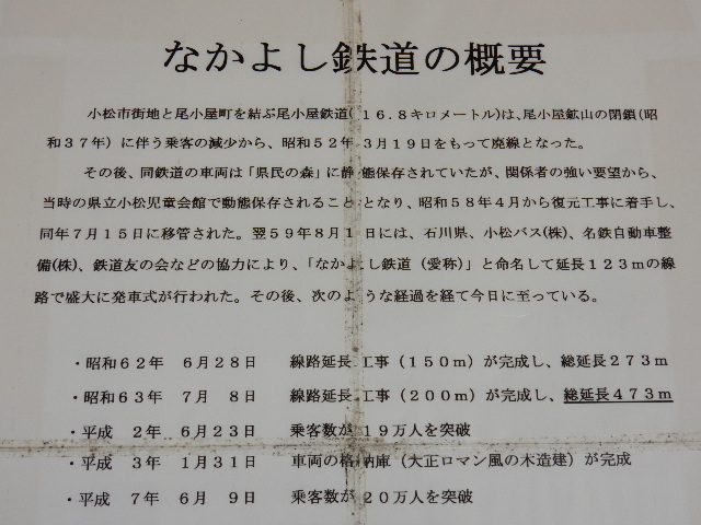 尾小屋鉄道の簡単な歴史と、車両がココに移設されて「なかよし鉄道」