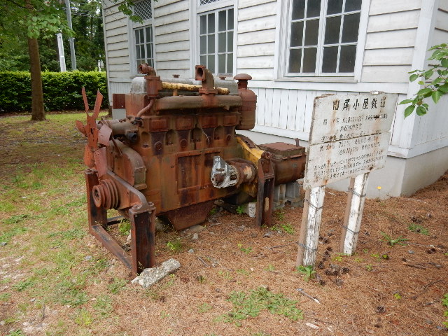 車庫の裏に、ディーゼル機関車のエンジンらしきモノがありました。