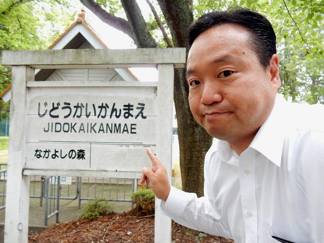 …先程の駅は「じどうかいかんまえ」と言います。改札があって係の