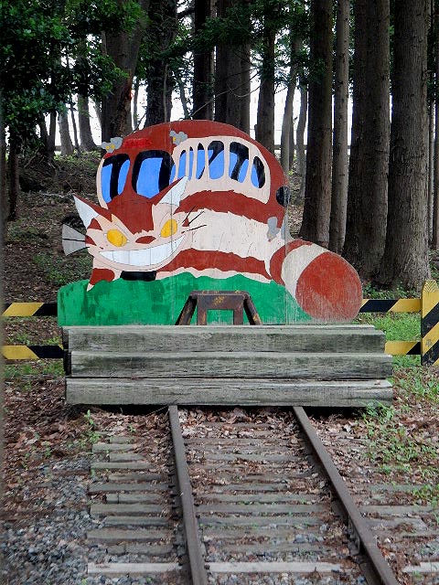 終点近くにトトロ、車止めの先にネコバスが居て、ココで折り返します。