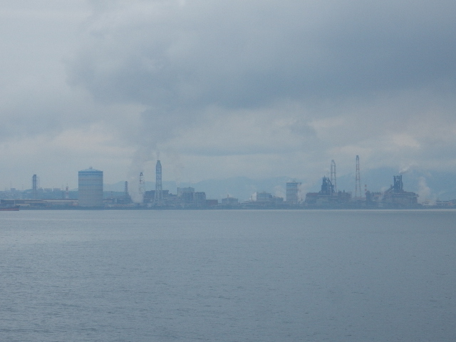 起きて別府湾に入ると、大分の工業地帯が見えてきます。