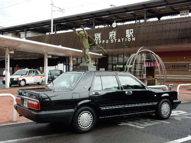 …東口で、別府を観光開発した油屋熊八のおっさん像がお出迎え。