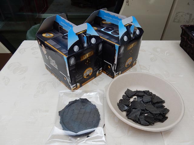 石炭に見立てて食べれる竹炭をまぶした
