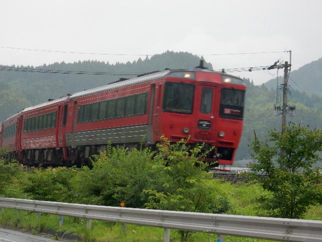 久大本線と平行した道路で、列車に