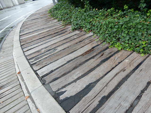 …コレだけクリスタルな建物なのに、周囲の歩道がどうも木製枕木
