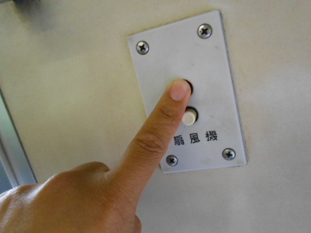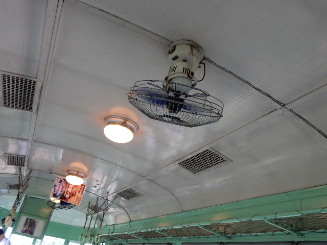 車内の空調は、冷房装置など勿論なく、扇風機です。…しかもスイッチ