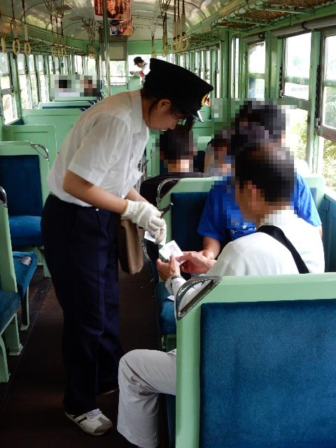 車内では、先程の女性の車掌さんが検札に回ってきました。