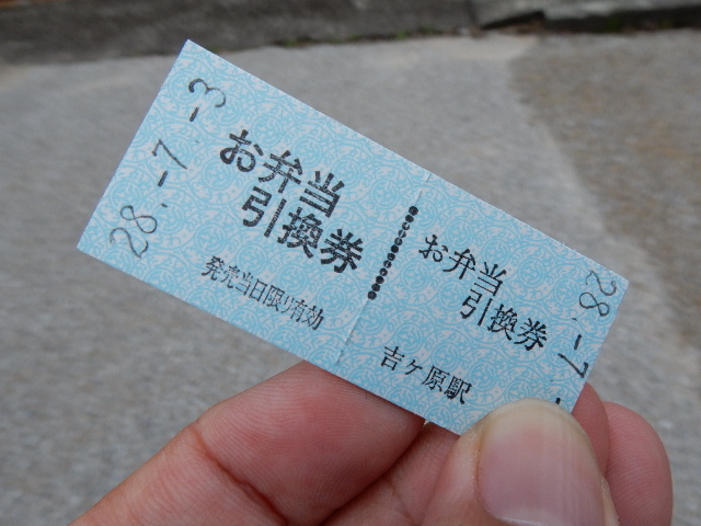 出札口で「お弁当引換券」という硬券を買い、ソレをお店に持って行く