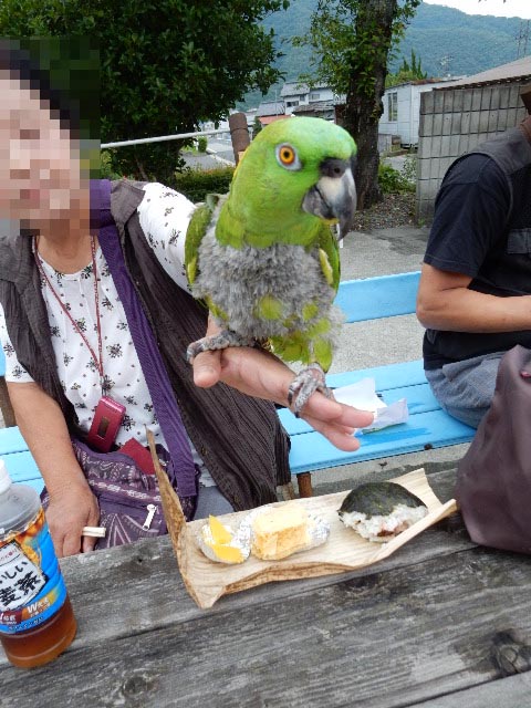 同じテーブルに、巨大インコを連れたお母さんが居ましたので、代わりに