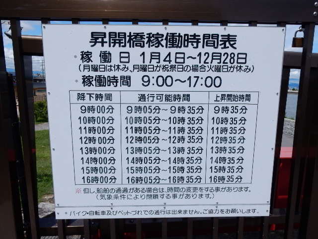 橋の袂に、昇開橋の可動時間というのが書いてありました。