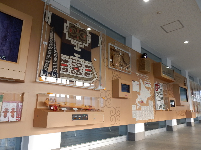 駅舎とコンコースは橋上にあります。北海道らしいアイヌの民族的な