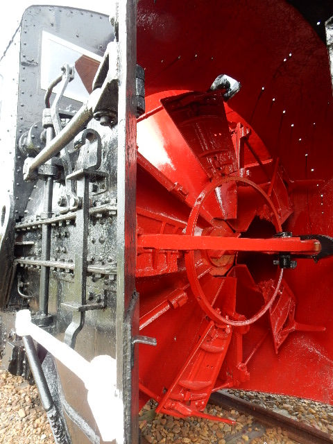 後部にある翼のような部品を左右に広げて線路際の雪の壁を崩し、