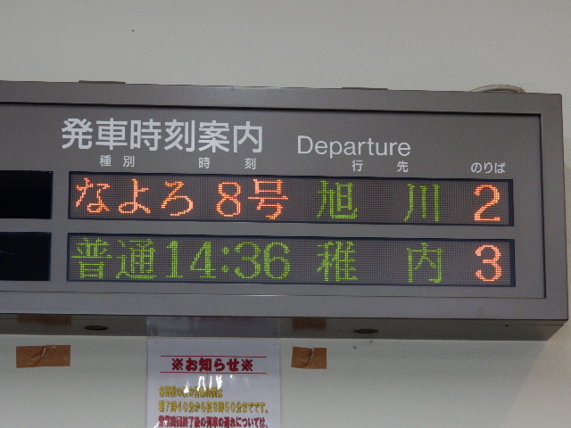 の早い時間(コレが最終)の運転なので「名寄の人が旭川へ行くため」の