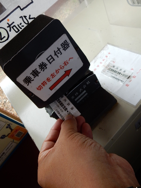 という事で館内へ。入った所に乗車券に日付を打つ機械が置いてあり、