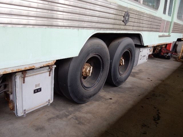 やはり近くで見ると、ゴムタイヤの台車と案内車輪の形状がよく