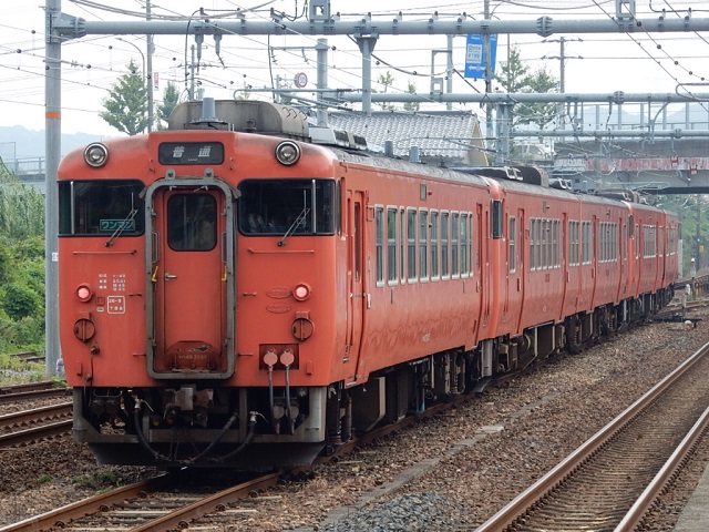 山陽本線は貨物が矢鱈と多い区間だし、堂々5両編成のキハ40系とか。