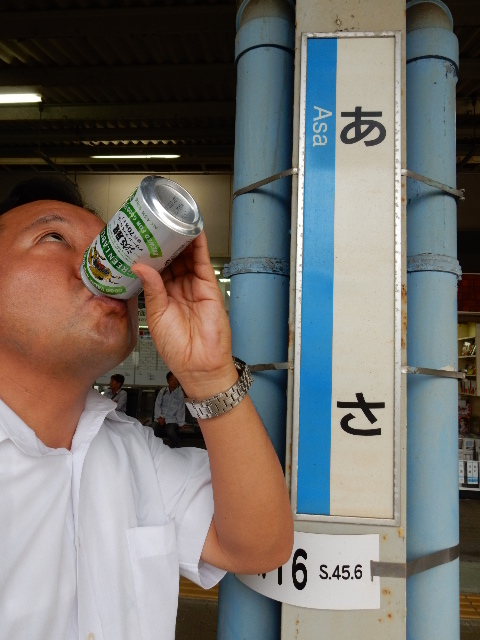 という買い方でアテを調達。飲みながら美祢線を待つ…。