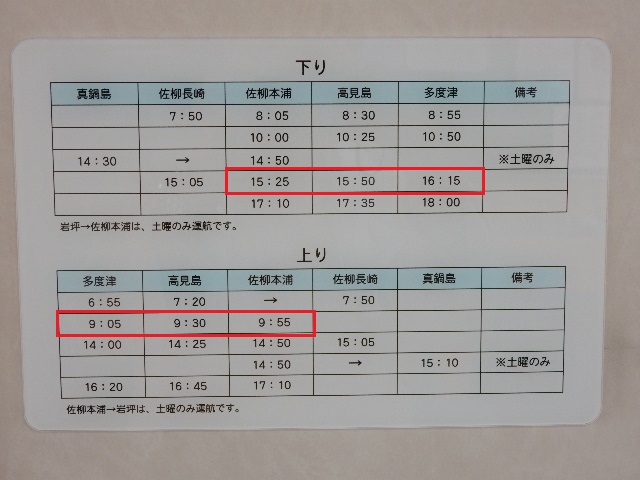 今回はまず午前中の便で島に行き、午後に来る次の便で帰るという事で