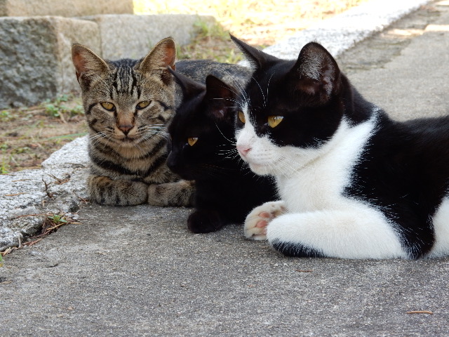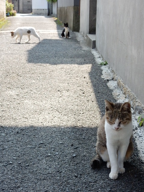 道路はあるものの車が殆ど通らないので、道端でも猫たちは自由です。