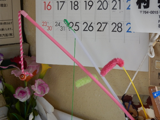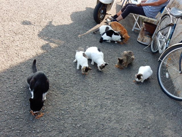 佐柳島では特に、エサやり規制などの決まりもナイらしく、船着場前でも