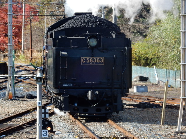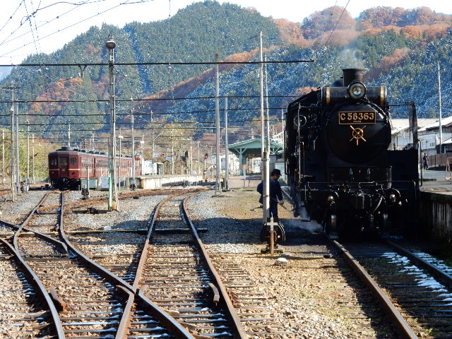 三峰口に着くと、機関車のC58363は客車を切り離し、整備のために