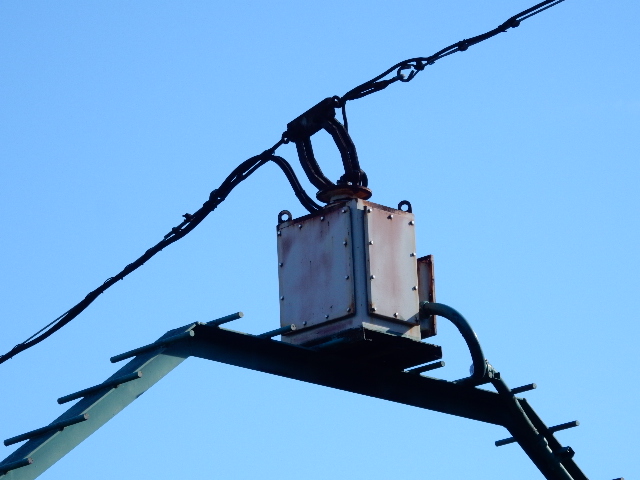 動力は電動モーターで、上に貼られた電線から電力が供給されるようです。