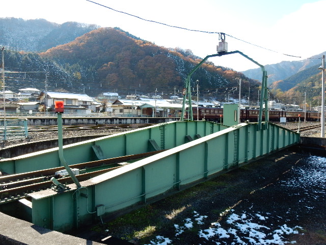 終点の三峰口駅で整備作業が行われた後は、転車台で方向を変えます。