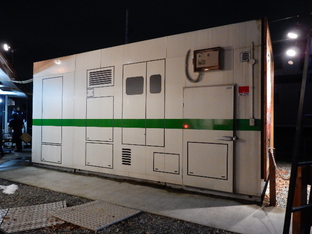 飲食店によくある外付けの冷凍チャンバーも列車っぽいデザイン。