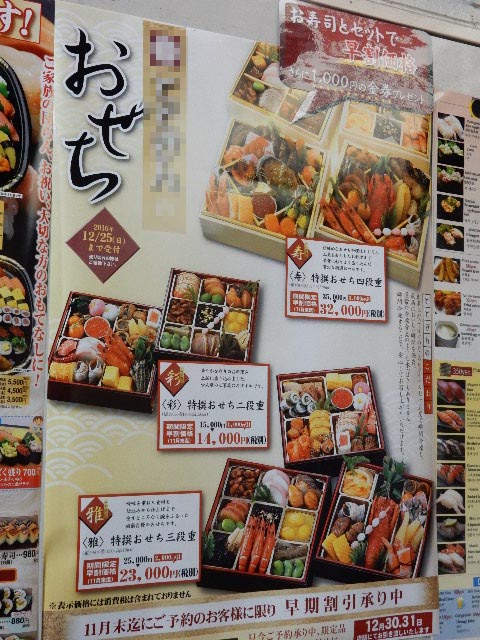 なる「おせち料理」の広告…。