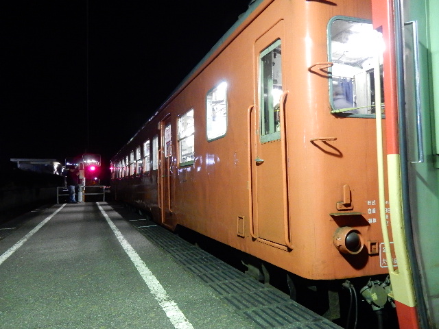 大原駅に停車中の夜行列車です。出来るだけ長編成に見えるような