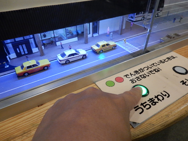 …駅前にあるボタンを押すと列車が走るようです。