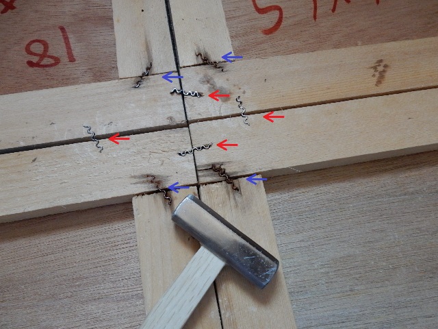 波釘のうち赤が今回の作業で打った分。