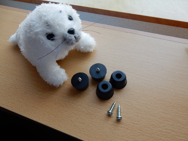 続いて裏面に、ホームセンターで合わせて買って来たゴム製の「脚」を