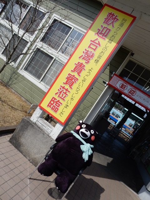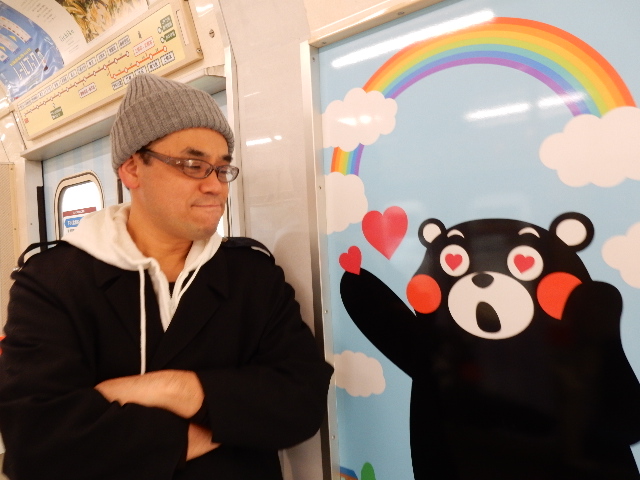 さて熊本です。熊本電鉄の上熊本駅から、くまモンの電車で集合場所の