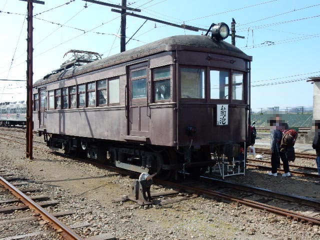 車庫内に居るモハ71は、熊本電鉄の最古参車両。…元は国鉄可部線の