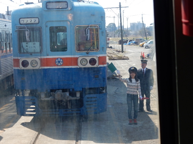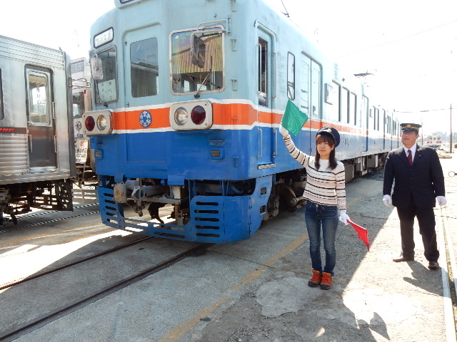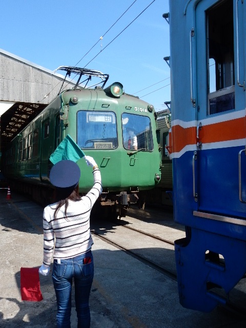 さて社員旅行です。熊本電鉄の車庫で、まずは最初の体験プログラム