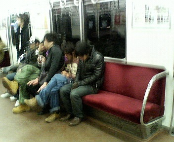 夜中に近い田舎の電車で、普通に空いてんだから、