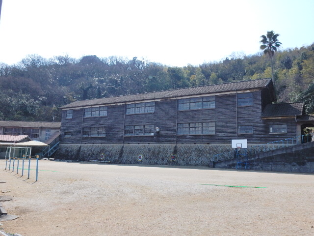 先程の猫集会場からすぐの所に、真鍋中学校と真鍋小学校があります。
