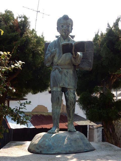 …校門前の二宮金次郎さんは、がっつり前を向いてます。