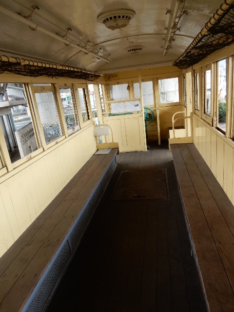 はなく、ロングシートもモケットを外して木のベンチに造り替えられており