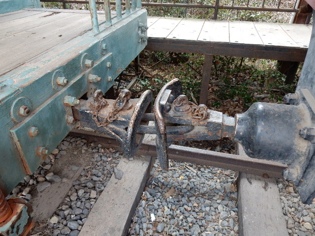 連結器は軽便車両でよく見る、リングとピンで繋がってるタイプ。