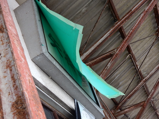 緑色のクラフトボードで隠してありますが「矢掛駅」の文字が見えます。