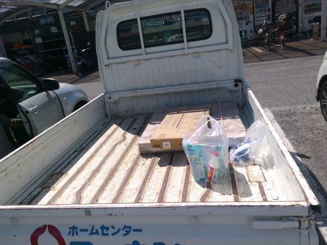 に置けないので、一旦整理して実家に運ぶべく、近くのホームセンターへ
