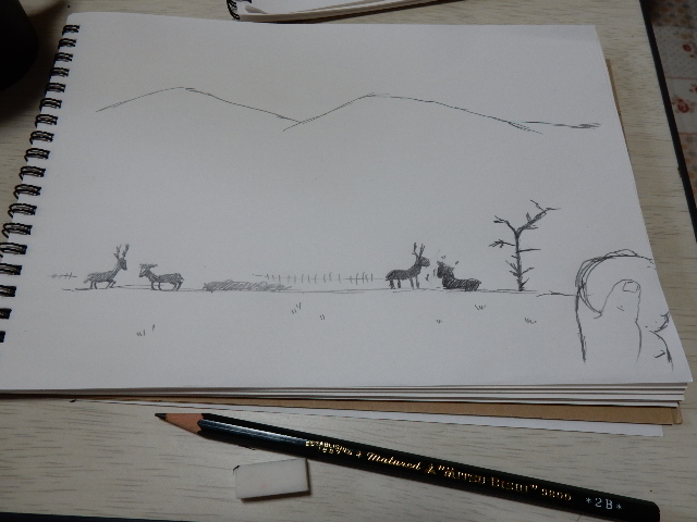 本来の予定では「気候のイイ季節になりましたので、外でお絵描き